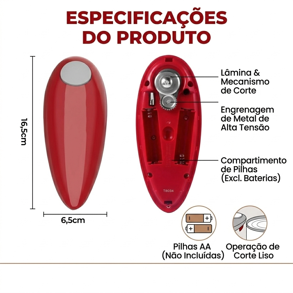 Cozinhar deve ser um prazer, não um treino de musculação. O Abridor Elétrico AbreFácil Pro elimina a necessidade de força manual, abrindo qualquer lata de forma automática e segura.